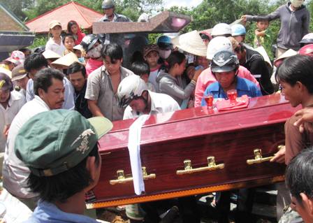 Chưa bao giờ xã Phước Tân (huyện Nhơn Trạch, tỉnh Đồng Nai) lại ở trong một không khí tang thương và kinh hoàng đến vậy. Trong cái nắng của tiết trời tháng 6, hàng trăm người lầm lũi tiến theo chiếc xe tang chở 2 cỗ quan tài nhỏ của hai chị em bé gái sinh đôi Phạm Phương Vy và Phạm Vy Phương (hơn 7 tháng tuổi).