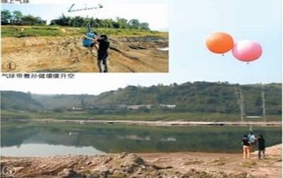 Chàng trai bay trên trời bằng... 11 quả bóng