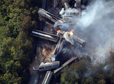 Tàu 98 toa trật bánh, bốc cháy dữ dội
