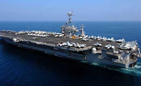 Cùng một lúc, để việc trừng phạt được quân sự hậu thuẫn, Mỹ phái chiếc tàu sân bay thứ 4 tới vùng Vịnh Ba Tư. Ngoài ra, Mỹ còn triển khai máy bay không người lái dưới nước tới khu vực này nhằm đương đầu với mìn nước mà Iran có thể cài cắm tại Eo Hormuz để chặn tuyến đường sống còn này.