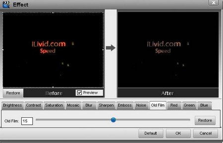 Để khôi phục lại trạng thái gốc (bỏ mọi hiệu ứng đã chọn), nhấn nút Default.
