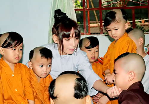 Trở về nước sau những chuyến lưu diễn dài, nữ ca sĩ hải ngoại đã dành một ngày để về thăm các con nuôi do cô bảo dưỡng trong 3 năm qua tại Bình Phước.