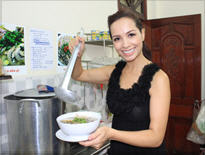 Bún nấm gà là một biến tấu từ bún thang của người Hà Nội do chính tay cựu người mẫu chế biến.