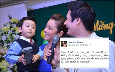 Chị ấy đã đăng trên trang cá nhân dòng trạng thái nói về những ầm ĩ không đáng có thời gian qua và thừa nhận đó chỉ là do cảm xúc nhất thời. "Jenni rất tiếc vì sự nóng giận của mình đă tạo nên sóng dư luận không tốt và không đáng có ảnh hưởng đến con trai mình. Dù sóng gió như thế nào đi nữa vẫn không thể nào thay đổi tình mẫu tử. Cảm ơn tất cả mọi người" - Jennifer Phạm chia sẻ.
