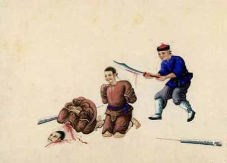 Tranh mô tả cảnh xử trảm phạm nhân trong xă hội cổ đại Trung Quốc.