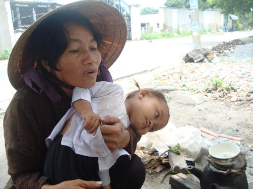 Tối 15/9, thấy bà nằm sốt cao vật vờ bên đường giữa trời mưa gió, một anh xe ôm tốt bụng bèn đưa bà vào bệnh viện huyện Hóc Môn, rồi điện thoại cho chúng tôi. Tiền viện phí bà cũng không có, nhưng bà vẫn mang theo đứa cháu nhỏ tội nghiệp vào bệnh viện cùng mình.