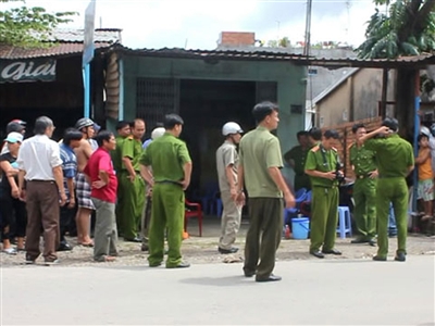 Lực lượng công an phong tỏa và tổ chức khám nghiệm hiện trường căn nhà trọ. Ảnh: Người Lao Động.