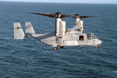 Loại máy bay MV-22 Osprey cất cánh và hạ cánh thẳng đứng có tính năng vượt trội hơn hẳn loại máy bay trực thăng CH-46 mà lính thủy đánh bộ Mỹ hiện đang sử dụng tại căn cứ Futenma, Okinawa.
