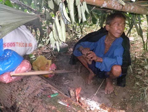 Điệp khúc “chờ có đất” cứ tái diễn suốt năm này qua năm khác. Biết sức khỏe của “người rừng” không thể chờ thêm được nữa nên chúng tôi đã cùng mấy người dân bản địa giàu lòng nhân ái dựng tạm túp lều bằng bạt ở ngay rìa suối cạnh bản Hạ Sơn để ông Phẩy ở. Kẻ qua người lại thấy hoàn cảnh đáng thương của ông đã tự nguyện góp gạo, góp rau để ông sống qua ngày.