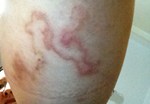 Điện thoại cho hai người bạn đi cùng chị M. mới biết một người bị đến hai chỗ: Đùi và ống quyển với các triệu chứng y như chị. Chị này đi khám được bác sĩ da liễu cho là bị côn trùng cắn hay giời leo và cho chị 10 ngày thuốc thoa và uống nhưng không khỏi. Người thứ ba cũng bị tương tự nhưng ở ngực.