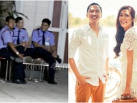 Cũng trong chiều tối nay, một đội ngũ bảo vệ đã được thuê đến để bảo vệ khu vực xung quanh nhà Hà Tăng- nơi đã trang trí chuẩn bị cho tiệc cưới vào sáng mai.