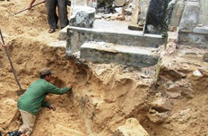 Khai quật ngôi mộ cổ tại nhà anh Phạm Văn Nam.