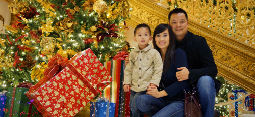 Anh Benjamin Vũ cùng vợ và con trai xem đèn Noel tại Trinity Broadcasting Network, Costa Mesa 2012. (H́nh: Benjamin Vũ cung cấp)