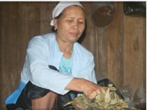 Thấy người đến xin thuốc, bà lôi từ trong nhà ra những bao tải thuốc đã trộn sẵn để lấy cho khách. Bà bảo không nhớ hết tên những cây thuốc vì có quá nhiều nhưng kiểu dáng cái cây đó và mùi vị của nó thì bà có thể phân biệt được hết. Ví dụ bệnh phổi phải lấy những loại cây nào, hạch, gan phải lấy những loại cây nào thì bà đều nhớ rất rõ.