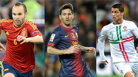 20h50: Tới ngày 29/11/2012, danh sách 3 ứng viên cuối cùng cho danh hiệu Quả bóng Vàng FIFA đã được công bố. Những người có cơ hội chiến thắng đêm nay là Lionel Messi (Barcelona), Cristiano Ronaldo (Real Madrid), Andres Iniesta (Barcelona).