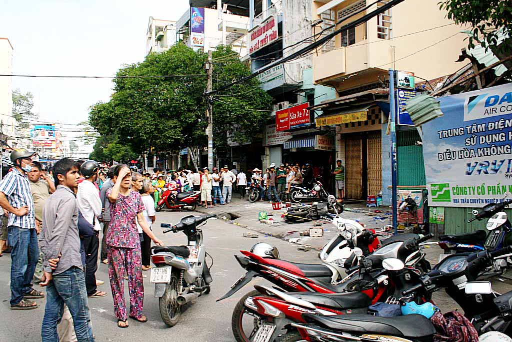 Trao đổi với Dân trí, Trung tá Nguyễn Văn Trường - Phó trưởng công an phường 1, quận 5, cho biết “Sau khi nhận được tin báo, công an đã phong tỏa hiện trường và hỗ trợ người dân đưa nạn nhân đi cấp cứu. Vụ việc đã khiến ít nhất 6 người bị thương. Trong số đó có 2 người bị thương rất nặng, được đưa đi cấp cứu trong tình trạng nguy kịch. Một nạn nhân được đưa đi cấp cứu tại bệnh viện Chợ Rẫy, 5 nạn nhân còn lại được đưa vào bệnh viện Chấn thương chỉnh hình”.