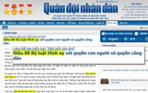 Trang báo của Quân đội nhân dân đăng bài “Điều 88 Bộ luật Hình sự với quyền con người và quyền công dân”