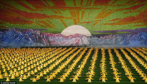 Khoảng 150.000 người, trong đó có 100.000 nghệ sĩ cùng biểu diễn trong lễ hội Arirang hoành tráng của Triều Tiên, tạo nên một bức tranh đẹp mắt.