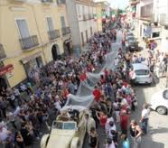 Để cô dâu cùng chiếc áo cưới có một không hai của mình đến được thánh đường, gần như tất cả các bà mẹ và thiếu nữ địa phương đã được chiêu mộ làm... phù dâu.