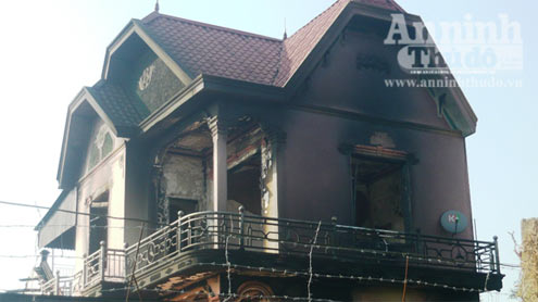 Mái che của căn nhà cũng bị ngọn lửa phá hủy.