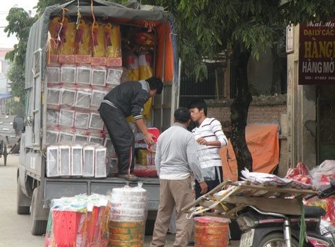Xe ô tô từ khắp các tỉnh thành tấp nập về xă Song Hồ lấy hàng những ngày cận Tết Nguyên đán Quư Tỵ