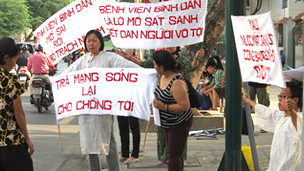 Một góa phụ 'gây xôn xao dư luận' khi mặc đồ tang tới trước cơ quan quản lư y tế ở Thành phố Hồ Chí Minh để khiếu nại và đ̣i Sở Y tế điều tra về việc chồng bà thiệt mạng sau khi bị một bệnh viện 'mổ sai,' theo truyền thông trong nước.