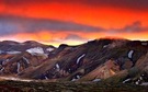 Tuyết đọng thành từng mảng trên mặt đất trong buổi hoàng hôn ở Landmannalaugar. Hoàng hôn xuống càng làm nổi bật các mảng màu đặc biệt đen, vàng của các sườn dốc. Theo người dân địa phương, thời điểm lý tưởng để tới tham quan, chiêm ngưỡng bầu trời rực rỡ sắc màu là vào tháng 6.