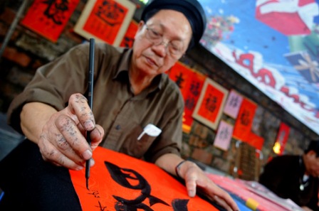 Trời oi bức, các ông đồ ở Hà Nội xắn tay hoặc mặc áo cộc cho chữ.