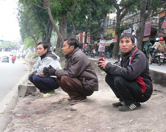 Từ tờ mờ sáng mặc cho trời rét thấu xương, trên các tuyến đường như đường Bưởi, chợ Long Biên, đường Nguyễn Trăi dọc xuống chợ Phùng Khoang và dọc theo cây cầu vượt Mai Dịch… đă có hàng chục lao động tự do ngồi chờ việc làm.