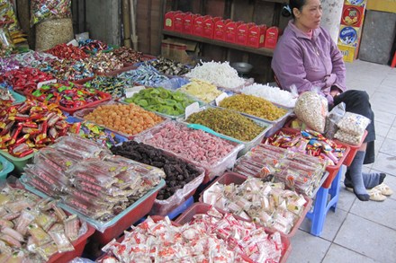 "Hàng trăm loại mứt tết, ô mai được bày bán trần như... nhộng, không có bất cứ thứ gì che chắn và cũng chẳng có nhãn mác gì gắn kèm. Các loại ô mai khác như bí đao, kiwi, mơ, mận... cũng không có xuất xứ nào ngoài lời giới thiệu đon đả của chủ hàng: “Ô mai xịn Hàng Đường đấy!”.