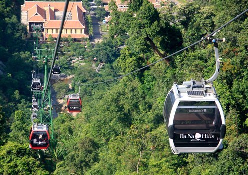 Khu du lịch Bà Nà Hills cách thành phố Đà Nẵng 25 km về phía tây. Trước đó ngày 25/3/2009 khi đưa hai tuyến cáp vào hoạt động, hệ thống cáp treo một dây của Bà Nà Hills đă đạt kỷ lục Guinness với độ dài 5.042 m; độ chênh lệch giữa ga đi và ga đến là 1.291 m. Tuyến cáp thứ ba đă phá vỡ kỷ lục của hai tuyến cáp cũ.