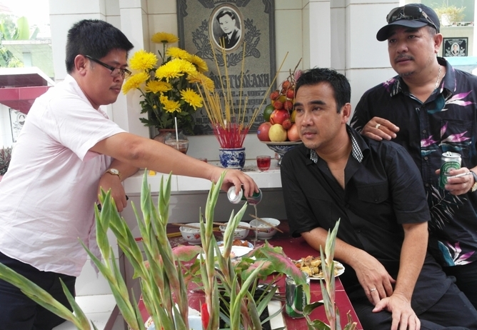 Phước Sang, Quyền Linh, Lê Tuấn Anh bên mộ của người bạn thân Lê Công Tuấn Anh, nhân ngày giỗ của diễn viên tài hoa này.