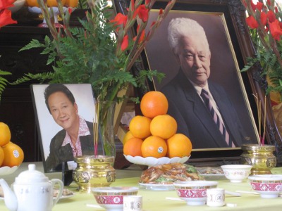 Bàn thờ nhạc sĩ Phạm Duy và ca sĩ Duy Quang. (Hình: Kỳ Phát/Trẻ cung cấp)