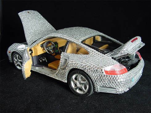 Mercedes SLS AMG nặng 2,25 kg với hơn 7.800 viên pha lê gắn trên thân. Giá bán không thấp hơn 2.500 USD. Ảnh: F1-world.