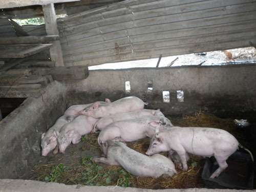 Đàn heo của một gia đ́nh ở xă Đại Tân có triệu chứng bị bệnh tai xanh