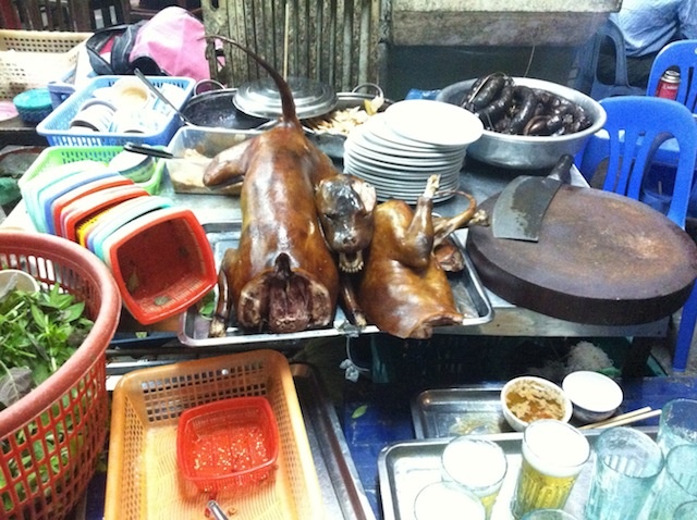 Ăn thịt chó tại Việt Nam không phải là một thói quen mới. Món ăn này đã có mặt tại đây từ hàng ngàn năm trước và có lẽ là có nguồn gốc từ Trung Quốc. Thịt chó được ăn chủ yếu ở miền Bắc, được cho là sẽ mang lại may mắn và khả năng cường dương cho nam giới. Đáng sợ hơn, không ai có thể cho tôi biết chính xác nguồn gốc những chú chó bị làm thịt, khi có những báo cáo về một số lượng lớn vụ bắt cóc chó xảy ra ở Hà Nội.