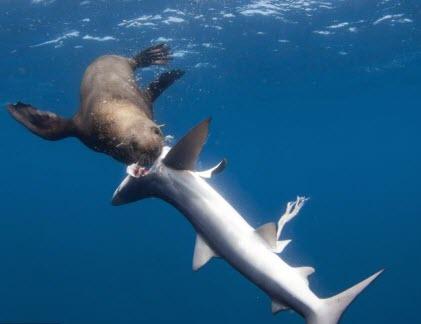 Những con hải cẩu chỉ ăn phần dạ dày và gan của cá mập. Nhiếp ảnh gia Chris Fallows giải thích rằng hải cẩu chỉ ăn da dày và gan vì dạ dày cá mập thường chứa cá và mực ống, trong khi, gan cá mập rất giàu năng lượng.
