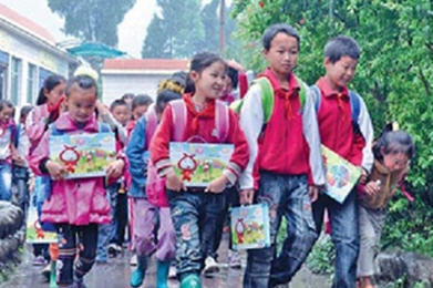 Học sinh đến trường tại huyện Yunyang, Trùng Khánh - Ảnh: Nhật báo Trung Quốc.