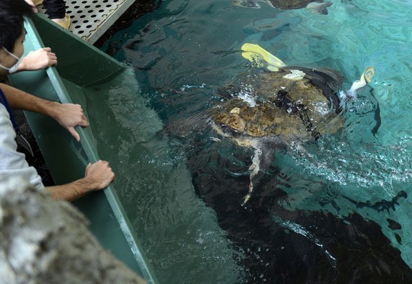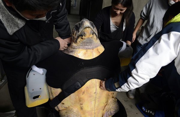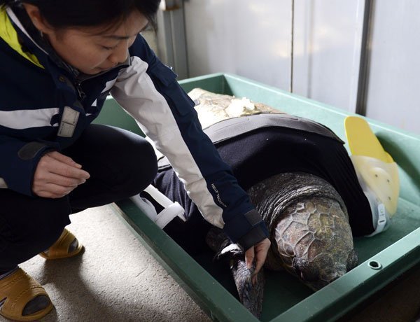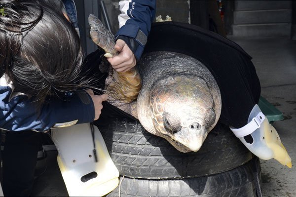 cho rùa biển, Lắp 'tay giả', Nhật Bản