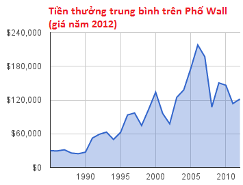 Bang New York gần đây tiết lộ mức thưởng trung b́nh trong ngành chứng khoán New York năm vừa rồi tăng 8%, lên 121.890 USD. Có đáng để bất ngờ không? Không. Chuyện Phố Wall tăng thưởng không hẳn năm nào cũng có, nhưng hầu như năm nào chả vậy.