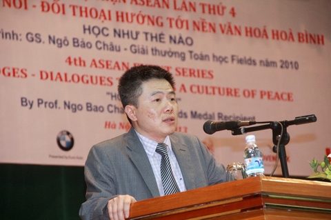 Buổi nói chuyện này của GS Ngô Bảo Châu nằm chuỗi sự kiện “Cầu nối - Cuộc đối thoại hướng đến văn hóa hòa bình” lần thứ tư tại Đông Nam Á do Quỹ Hòa bình Quốc tế tổ chức.