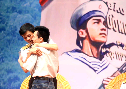 Ban tổ chức đã tạo sự bất ngờ cho đại úy Lanh bằng việc gặp lại người đồng đội từng xé áo băng bó vết thương, nút xuồng thủng đưa anh về phía tàu HQ 505 trưa 14/3/1988. "Bạn! Bạn khỏe không?", anh Lanh đứng sững khi cựu binh Lê Hữu Thảo bước lên sân khấu. Hai người ôm chầm lấy nhau, đôi tay ghì chặt. 25 năm qua, dù nhớ về nhau nhưng mãi đến hôm nay họ mới có dịp gặp lại.