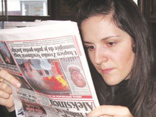 Bojana chỉ có thể đọc sách báo ở trong t́nh trạng "lộn ngược".