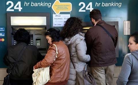 Người dân rút tiền ở máy ATM tại thủ đô CH Síp.
