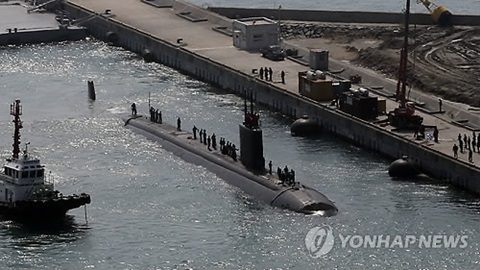 Tàu ngầm hạt nhân Mỹ tới Hàn Quốc - Ảnh: Yonhap