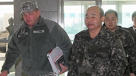 Tướng Mỹ James Thurman (trái) và tướng Jung Seung-jo. (Ảnh: Yonhap)