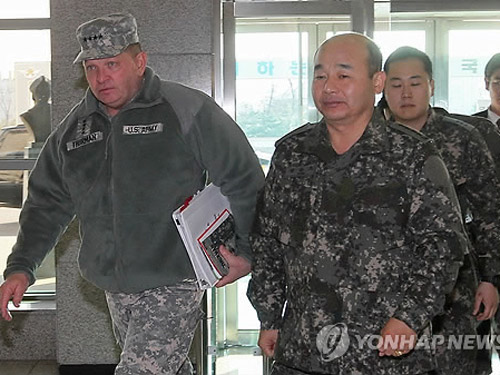 Tướng Mỹ James Thurman (trái), Tư lệnh lực lượng Mỹ tại Hàn Quốc,