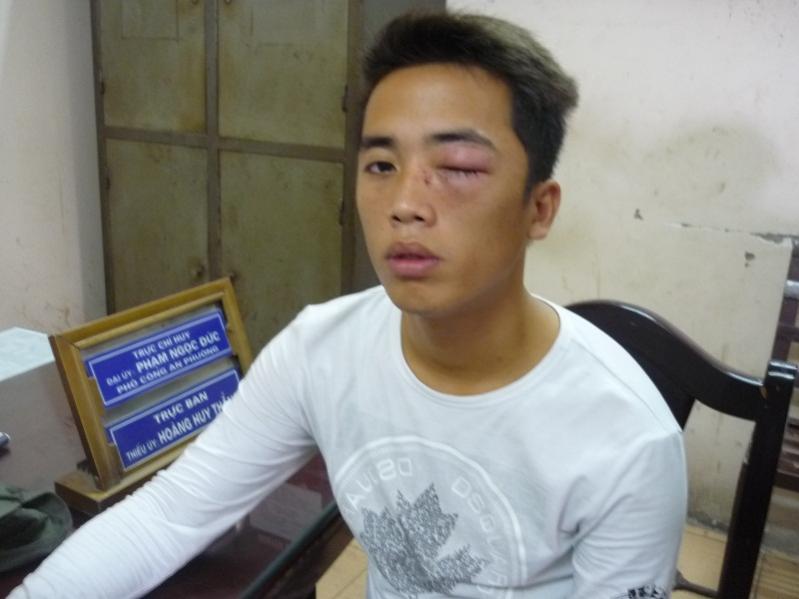 Theo lời kể của anh Hoàng, lúc đó, đường quá nhiều xe cộ, lại bị chặn nên anh đã giơ hai tay lên đầu. Anh Hoàng sau đó bất tỉnh, phải vào cấp cứu ở bệnh viện Thanh Nhàn với nhiều vết thương ở xung quanh cổ, gãy xương gò má.