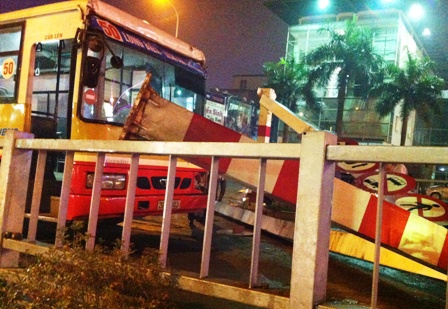 đâm đổ, cầu vượt, khung, siêu nhẹ, xe buưt