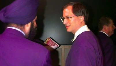 Thực ra những nhân vật trong bức ảnh đều mặc đồ màu đen, tuy nhiên do chất lượng nghèo nàn của chiếc máy ảnh QuickTake khiến cho những bộ trang phục trở thành màu tím.